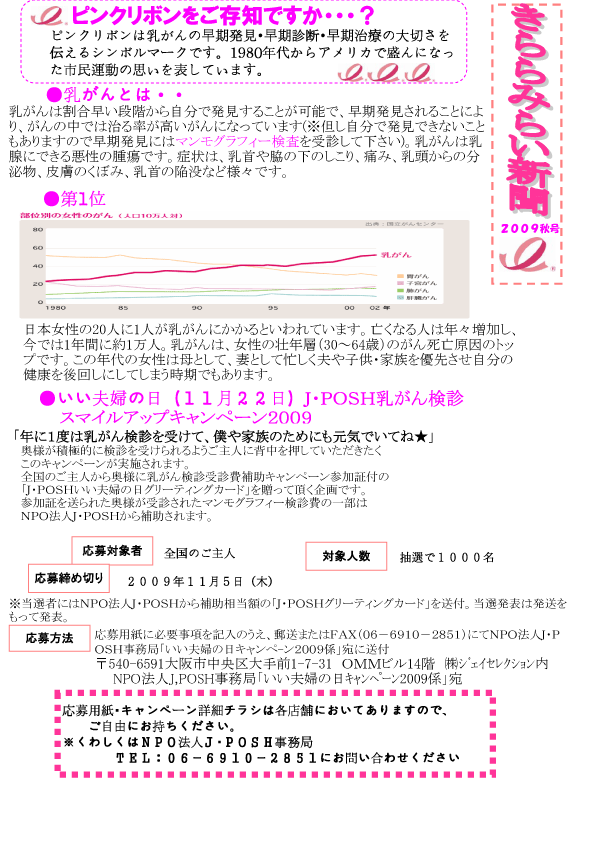 2009年秋号 「ピンクリボンをご存知ですか・・・?」